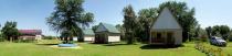 Среди этого зелёного великолепия разместились уютные дома-срубы. Каждый дом имеет свой двор, летнюю площадку, мангал, цветники, поляну с газоном, сад.