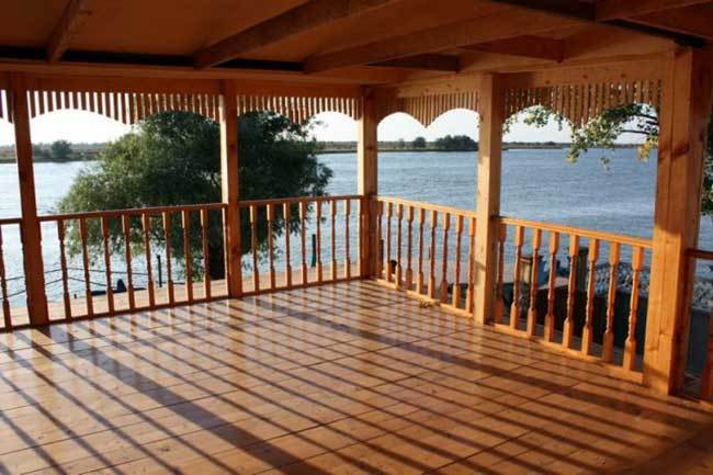 Просторная закрытая терраса на нижней палубе базы «Глаголь» позволит вам приятно отдохнуть на свежем воздухе.