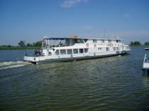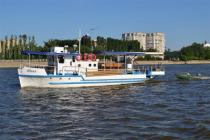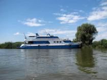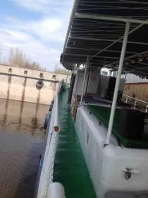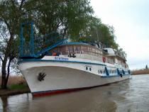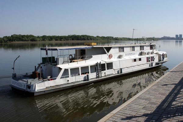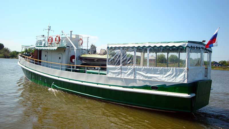 Теплоход используется в качестве передвижной плавучей базы для охоты и рыбалки в дельте Волги.